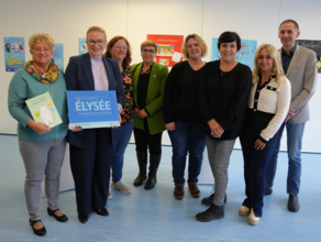 Mit diesem Label zeichnet das Saarland Einrichtungen aus, die bilingual deutsch-französisch arbeiten. Im Rahmen einer Feierstunde in der KiTa Maria Hilf am Mittwoch, den 01.10.2025 wurde der KiTa durch Bildungsministerin Christine Streichert-Clivot das offizielle Zertifikat samt einer Plakette überreicht.
