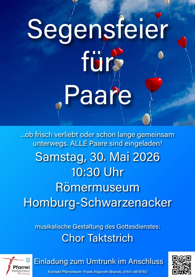Die Segensfeier wird musikalisch vom Chor Taktstrich aus Kirrberg gestaltet. Im Anschluss lädt die Pfarrei zu einem Umtrunk ein.