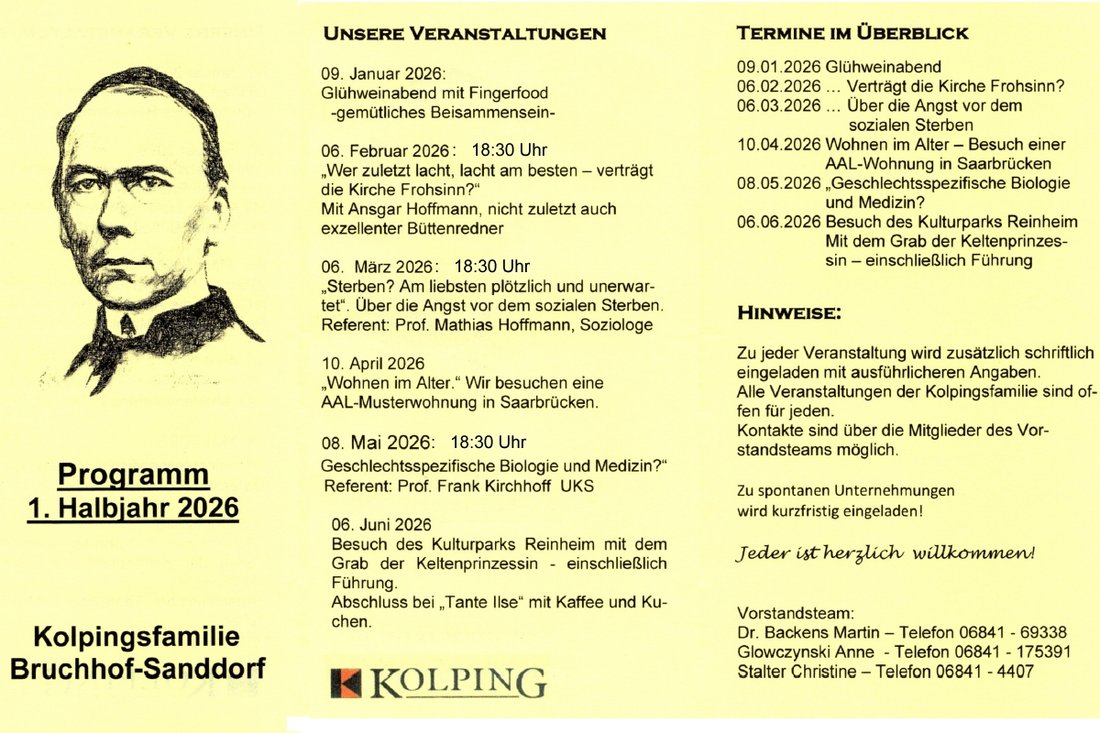 Veranstaltungsprogramm der Kolpingfamilie für das 1.HJ 2026