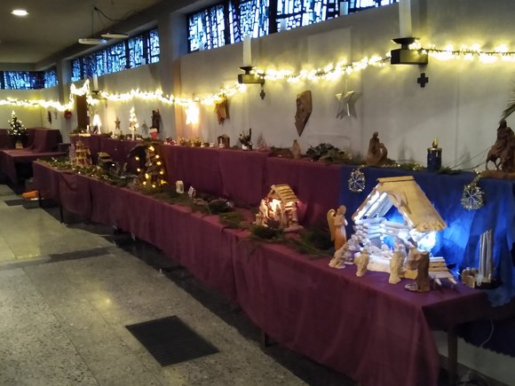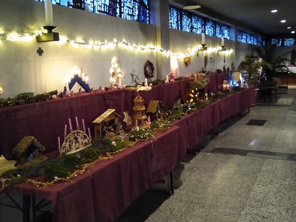 Am 6. Januar ist unsere Krippenausstellung nach fast 5 Wochen zu Ende gegangen. 63 unterschiedliche Krippen waren zu bewundern: von der kleinsten Krippe in einer Nussschale bis zu einer großzügig aufgebauten Krippenlandschaft. Besonders die afrikanische Krippe mit den dunklen Holzfiguren und die Krippe auf der Weltkugel fanden große Bewunderung.